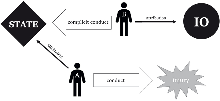 In addition, we have the situation briefly mentioned above in section 2.3 where the conduct of two persons is so closely intertwined to be indistinguishable. Consider, for example, a situation where a State official and an IO official perform a collective act or omission. Generally, the conduct of each of them is attributable to the State/IO under an organic link. Since their conduct is collective, it must be simultaneously attributed to the IO and the State in question. Again, there is a single course of conduct (one act or omission) that is attributed to both a State and an IO, because of a double organic link.
